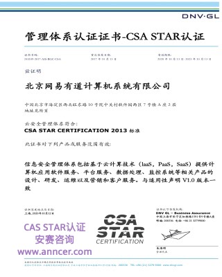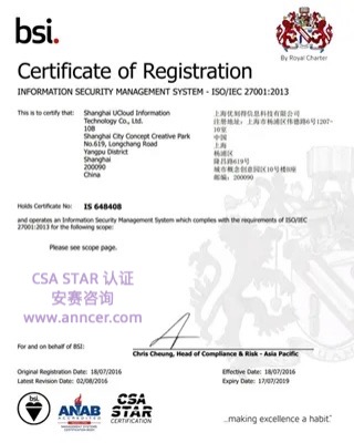CSA于2013年9月25日正式發(fā)布CSA STAR認證(Security,Trust & Assurance Registry)。它運用了ISO 27001管理體系標準的安全管控要求,結(jié)合CSA自身提出的云端控制矩陣(Cloud Control Matrix,CCM),以評分方式來展現(xiàn)云計算的安全程序。